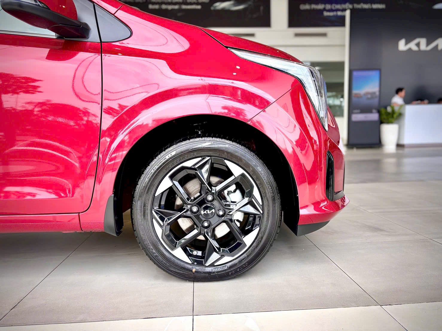 Xe trang bị bộ mâm xe 15 inch đa chấu hai tông màu đi kèm với dải đèn pha LED Starmap đặc trưng áp dụng phong cách thiết kế tương tự mẫu MPV Kia Carnival, giúp xe trông hiện đại và mạnh mẽ hơn.